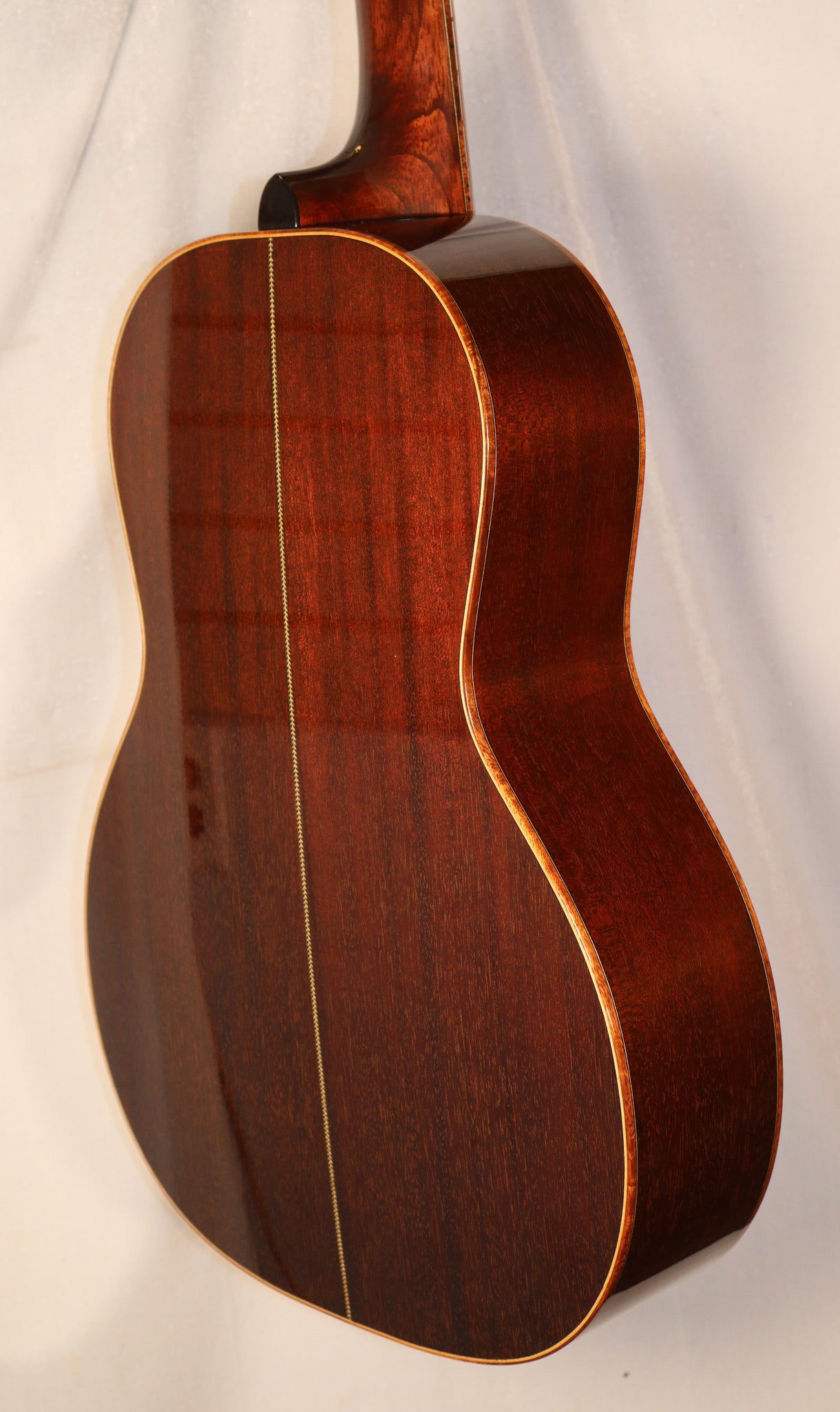 Best Mahogany back and sides, Best Sitka Spruce Top, Curly Koa Binding, Antique Bridge, Waverly tuning machines, Snakewood Buttons, Ramped Headstock with Brazilian rosewood overlay, Custom TKL Hardcase