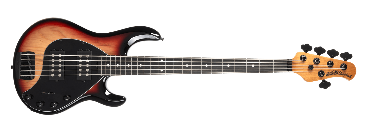 MusicMan StingRay Special 5 HH - Faded Vintage Sunburst - Roasted Maple/Ebony - Black PG - Black Hardware with Mondo gig case