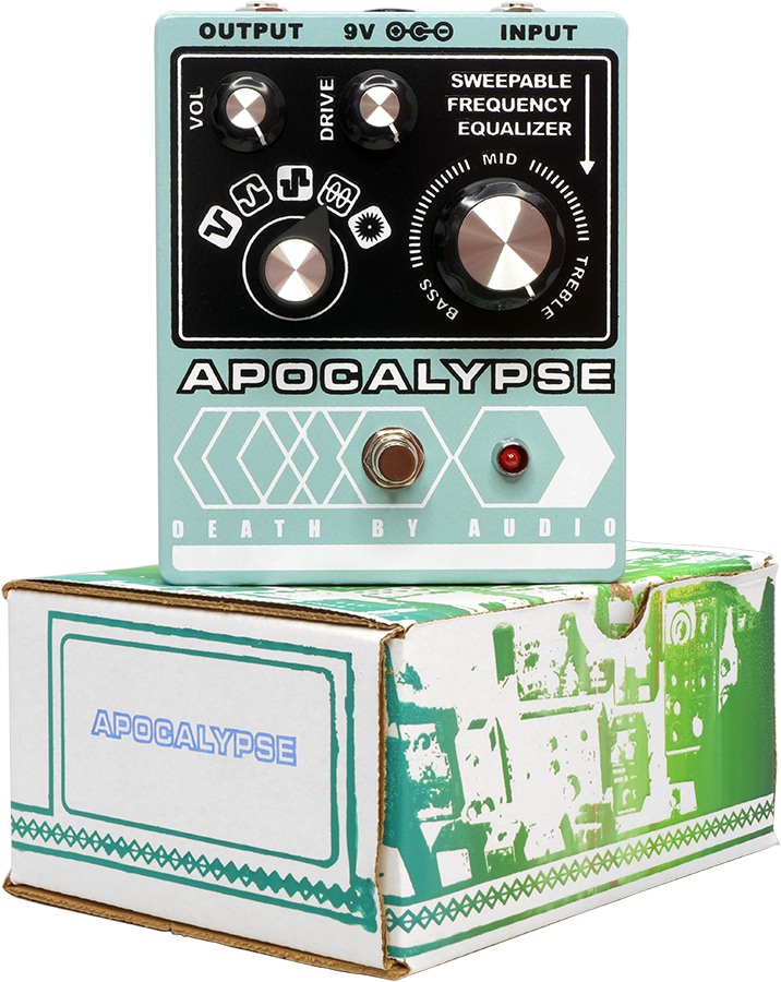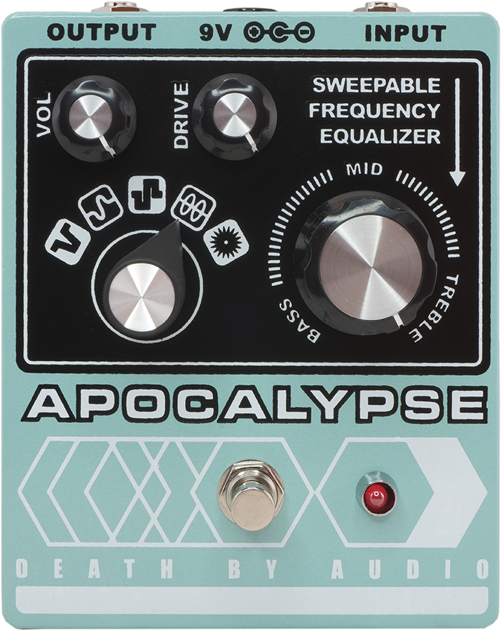 The Apocalypse is our jack-of-all trades fuzz pedal. After being dramatically overdriven, the signal is routed to one of five selectable post-amplifiers for five wild and unique fuzz tones. Toggle through its five signal paths and choose your desired apocalyptic sound. To further refine this beast, control the Sweepable Frequency Equalizer and carve your tone out just the way you like it.