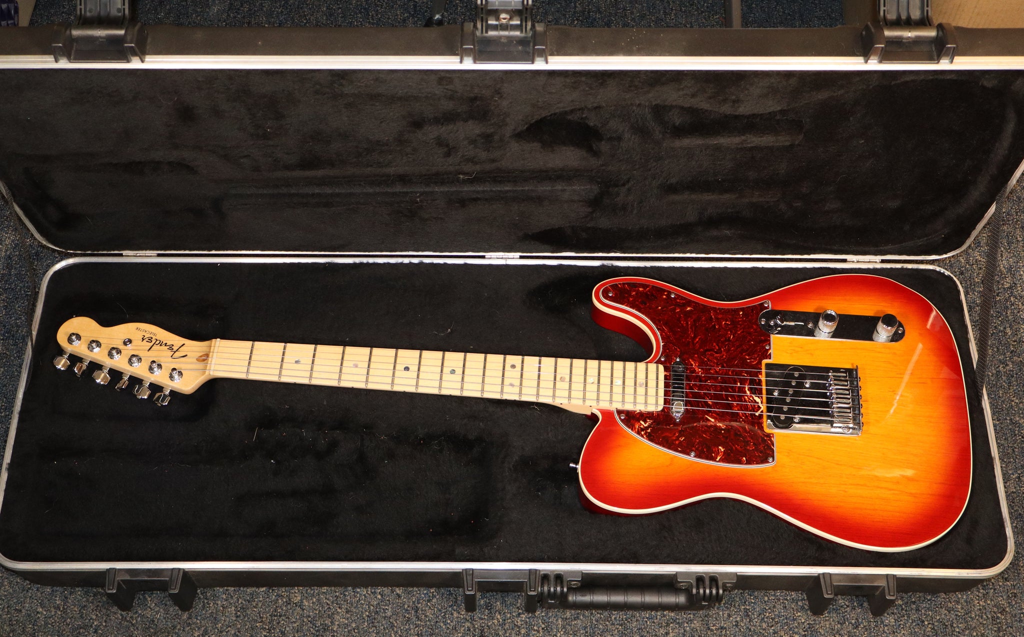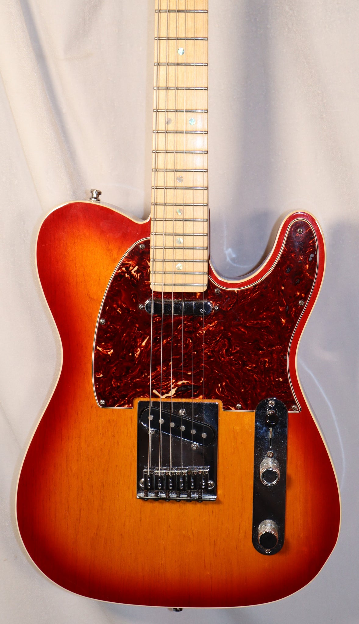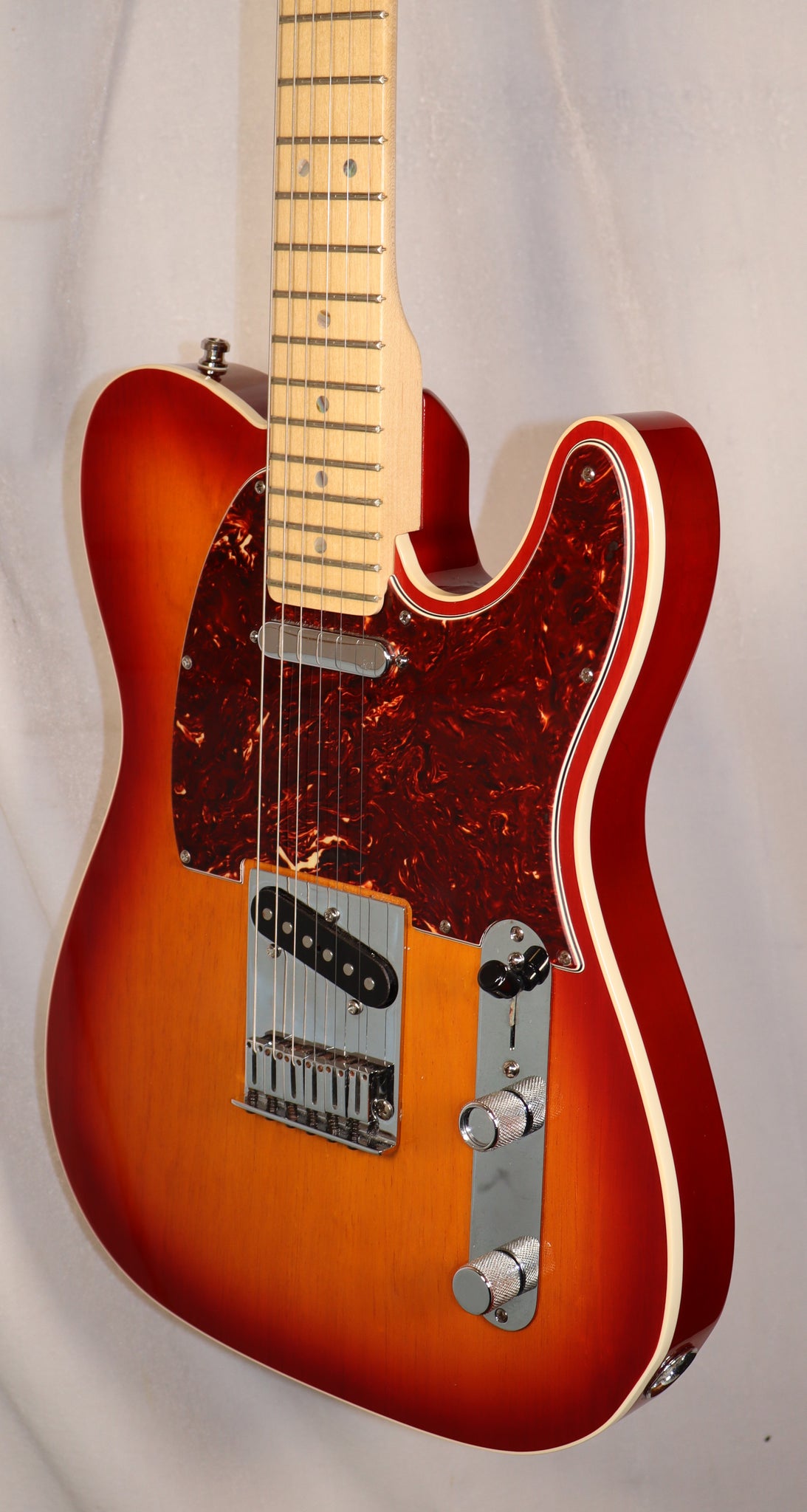 used 2008 Fender American Deluxe Telecaster Aged Cherry Sunburst Maple Neck with hard caase. Setup for optimal playability. Guitar weighs 8lb 3.5oz. There is some light play wear on the back of the body.