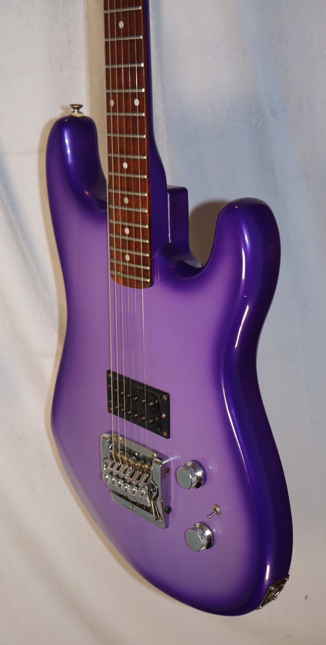 used Hohner Professional ST Metal Purple Burst with locking tremolo system. Does not include a case. Does not come with whammy bar. Guitar weighs 8lb 10oz