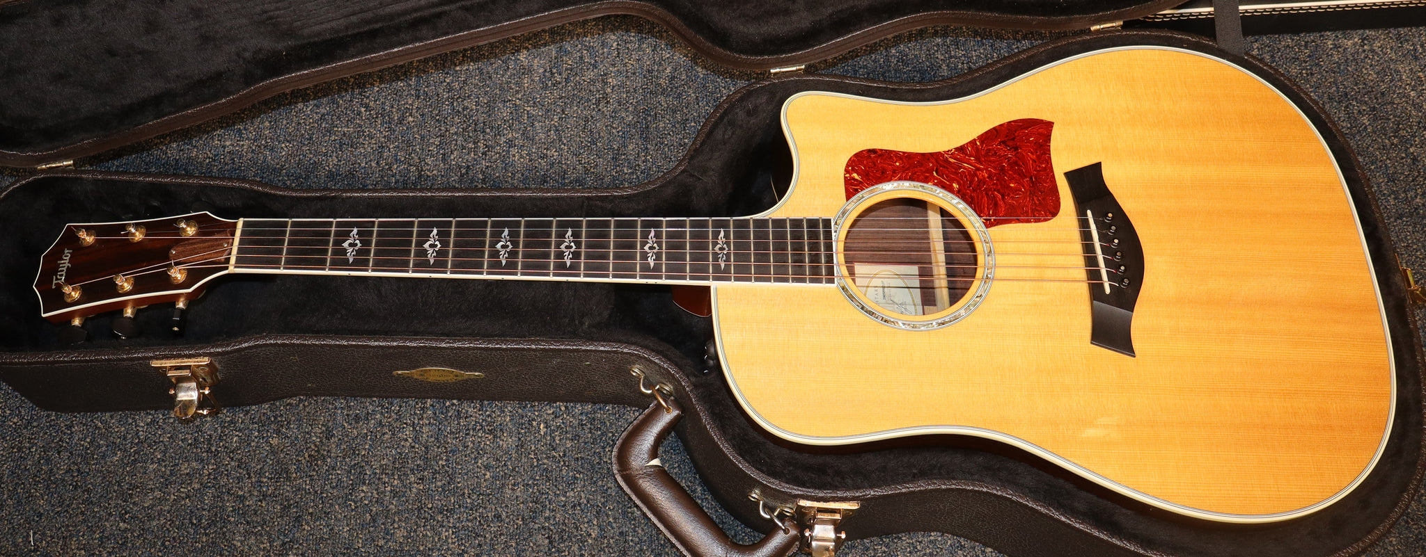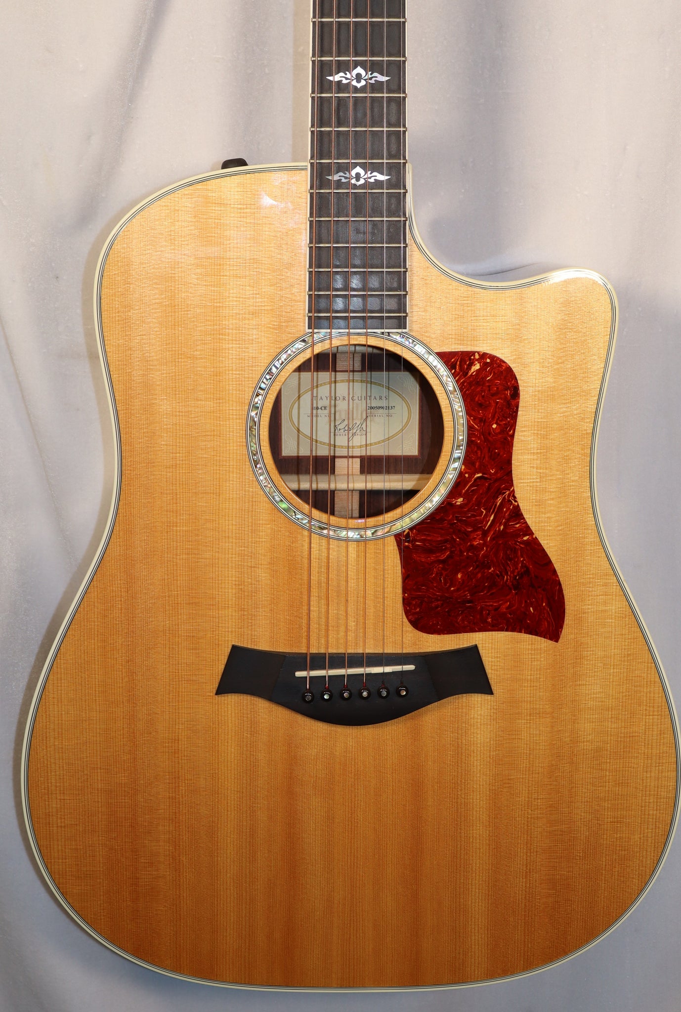 used 2005 Taylor 810ce Natural ES1 Expression System Dreadnought Acoustic Electric with hard case. Setup for optimal playability with new strings. Some light amount of play wear and some light finish wear on the back and sides.