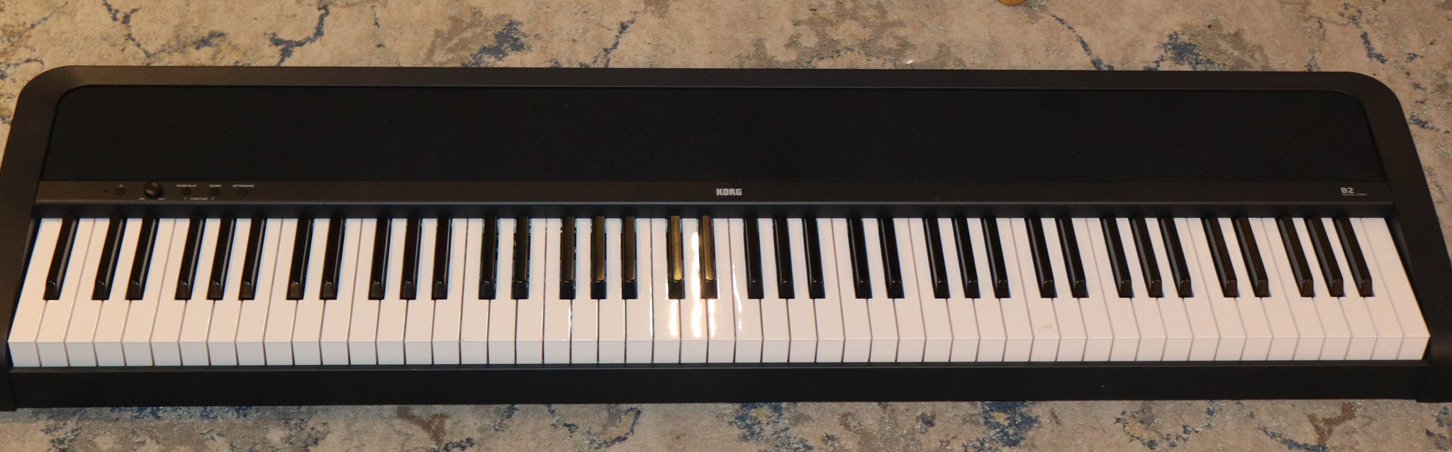 used Korg B2 88-key digital piano with Natural Weighted Hammer Action keys. In good working condition. Comes with music holder, pedal, manual, adapter.